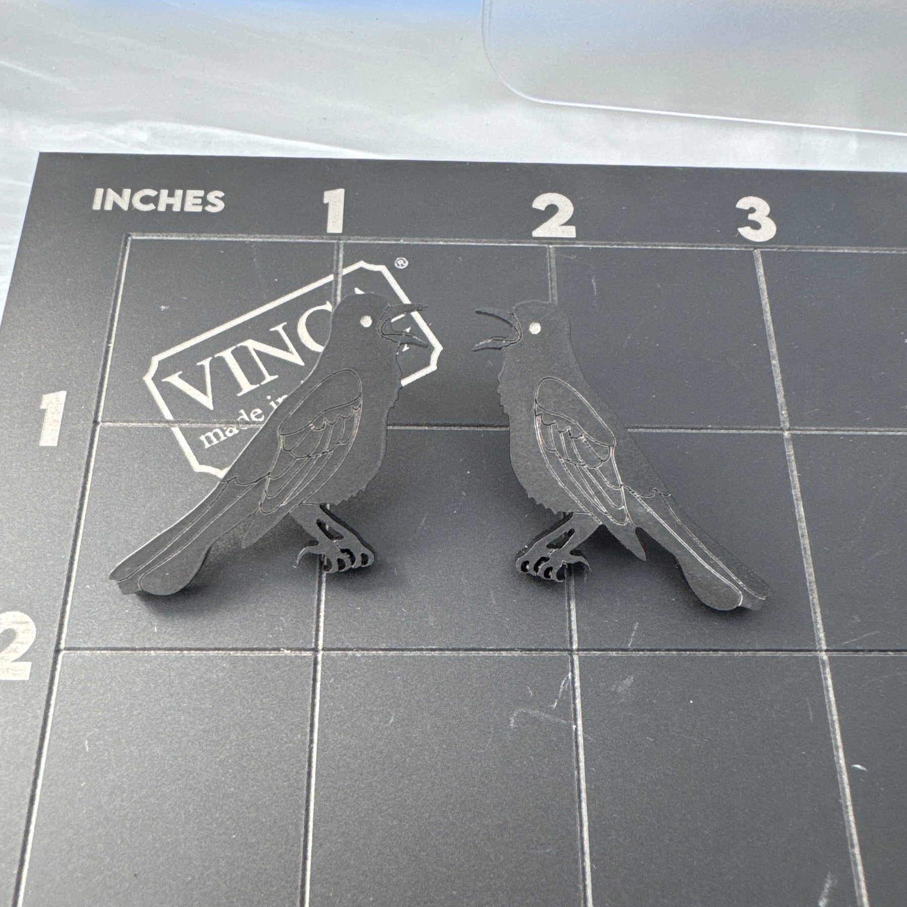 Our grackles got an upgrade in matte black plastic with our standard surgical steel posts.
