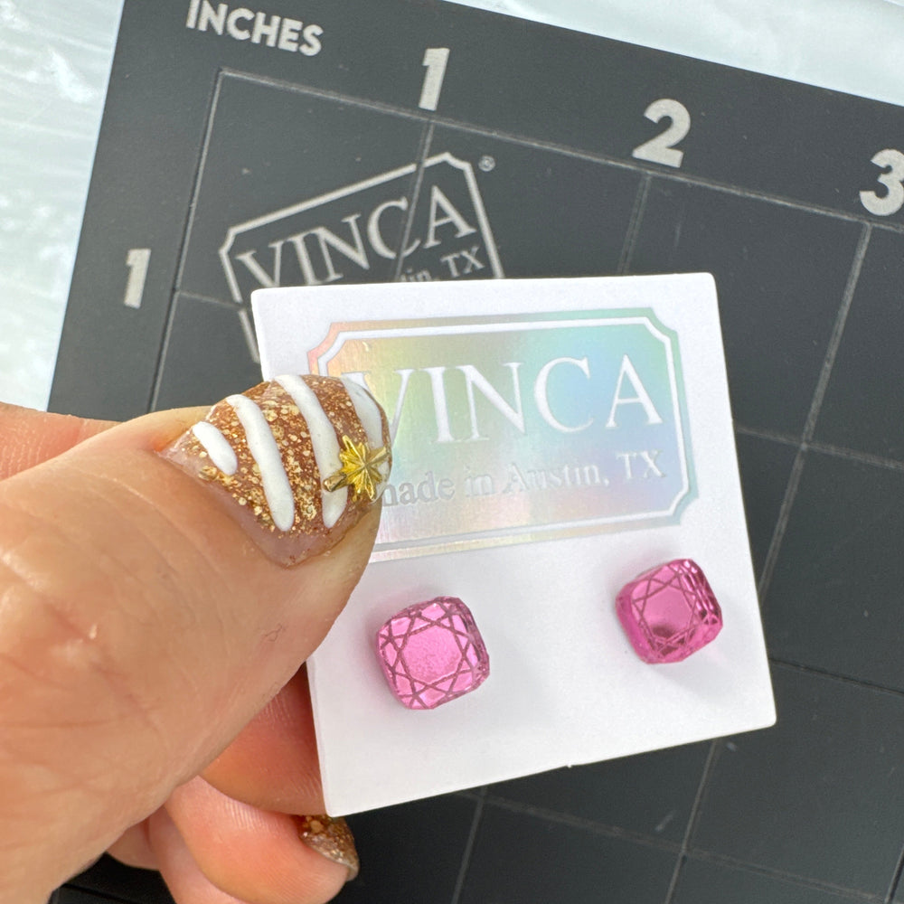 Sample Pink Square Diamond earrings (bin a-08-07)