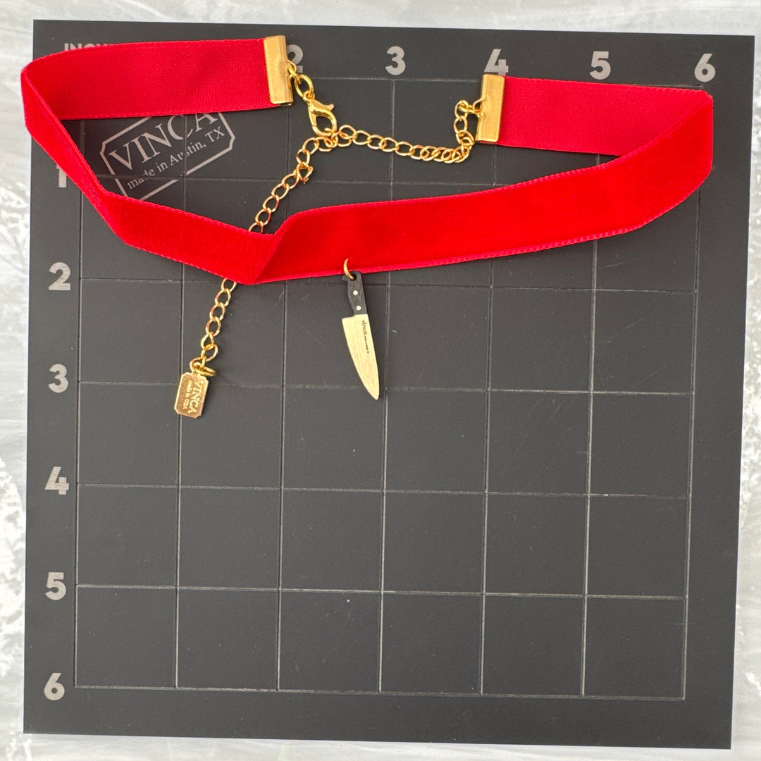 Sample Red and Gold Velvet Knife Choker (bin A-07-04)