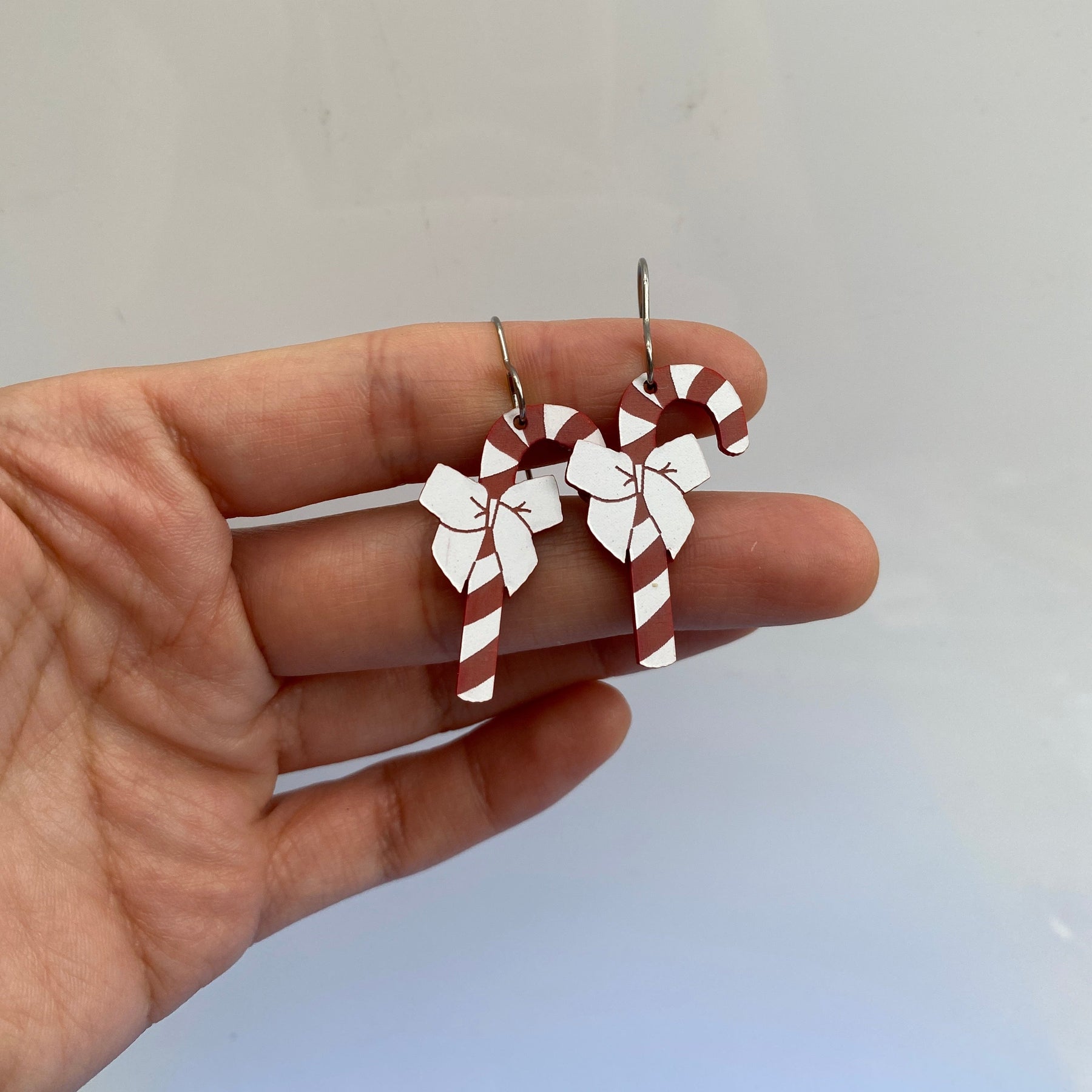 Happy holidays. Candy Canes, peppermint, whatever you wanna call these, they add a cool minty flavor to your fit. Simple hook style earrings with candy cane charms.