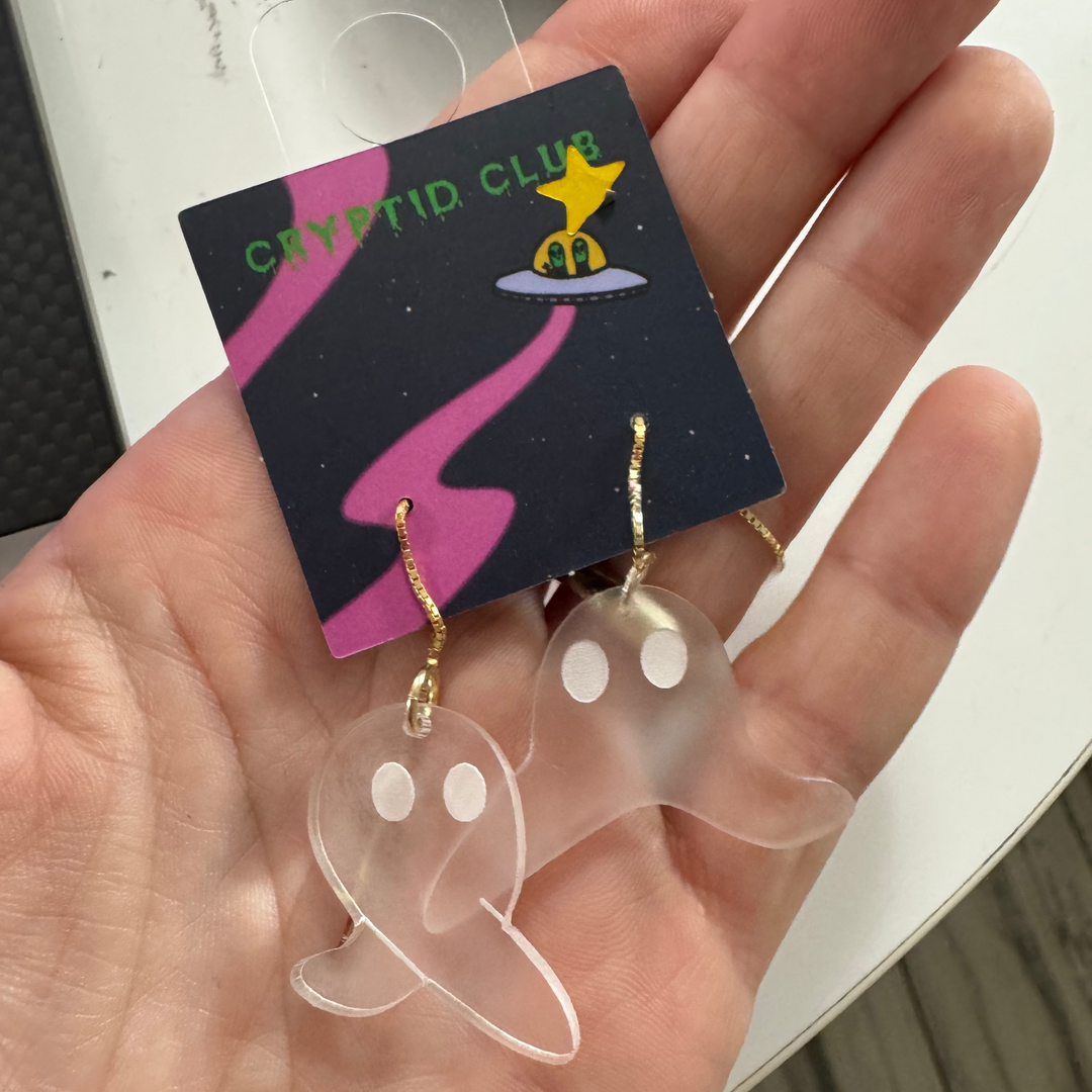 B-grade Glow-in-the-Dark Ghost Ear Threaders (bin A-05-07)
