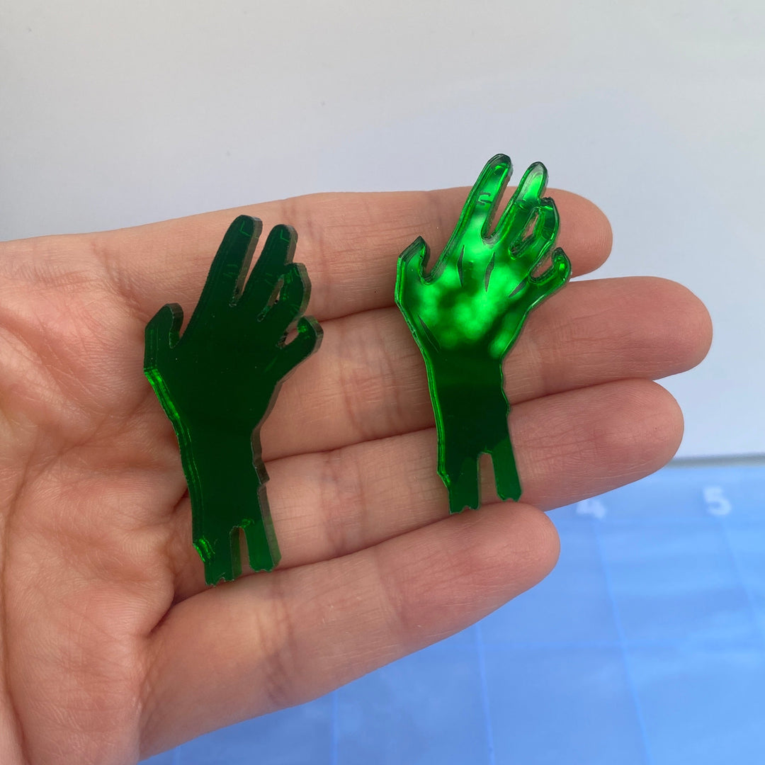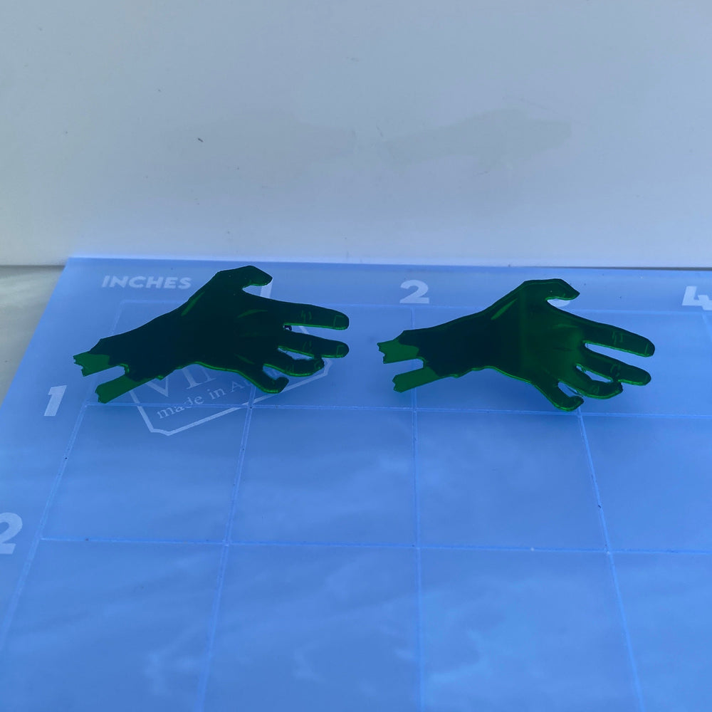 B-grade Mirror Green Zombie Hand Earrings (bin A-05-17)
