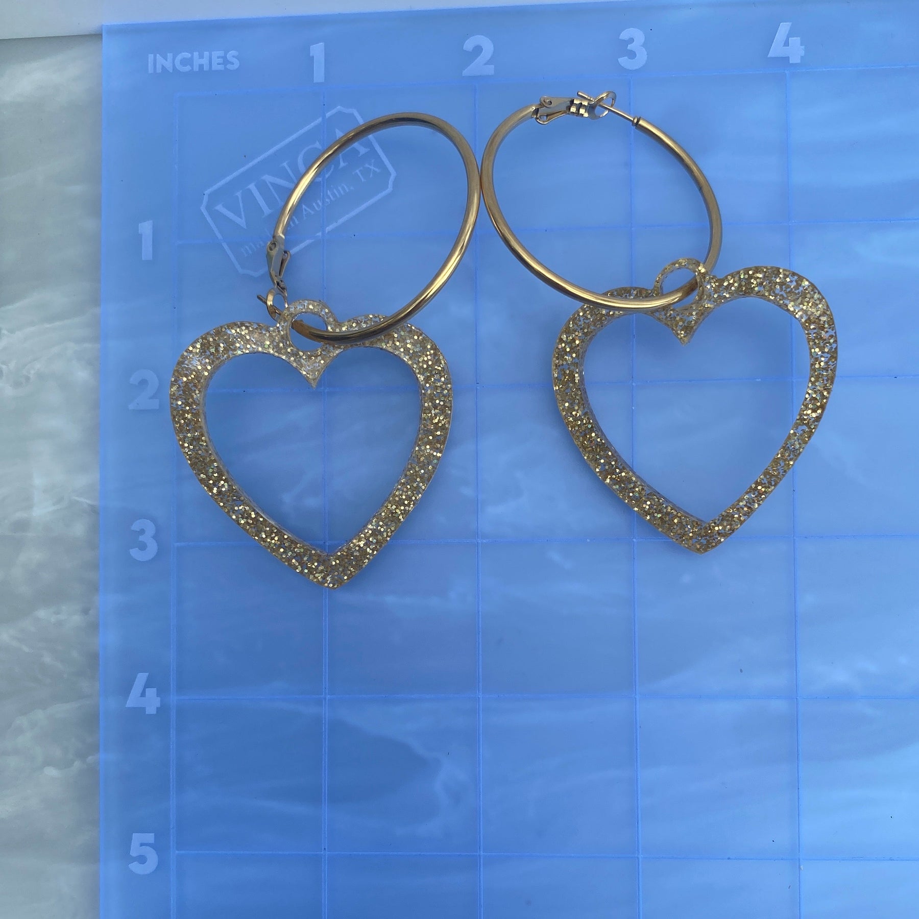 B-grade Glitter Gold Heart Hoop Earrings (bin A-05-03)